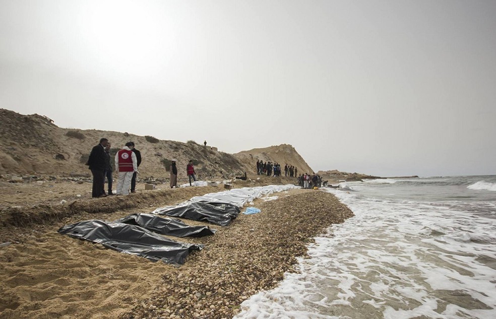 Os corpos de 74 migrantes que morreram afogados depois do naufrágio de sua embarcação foram encontrados em uma praia perto de Zauia, a oeste de Trípoli, na Líbia, anunciou nesta terça-feira (21) o Crescente Vermelho local.
