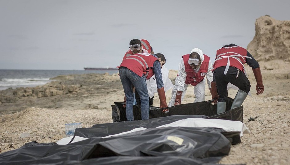 Habitantes da área descobriram um barco encalhado na praia, com vários cadáveres de migrantes em seu interior, e chamaram as equipes da Crescente Vermelho.