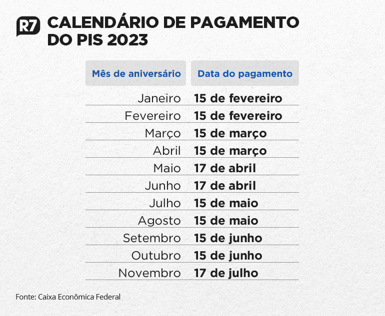 A nova etapa de processamento já foi iniciada, e a consulta dos novos resultados estará disponível a partir do dia 5 de abril. Os pagamentos ocorrerão entre os meses de abril e julho, conforme calendário do PIS/Pasep 2023 (veja abaixo).