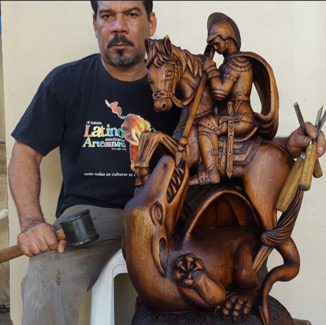 Dênis Coransil, 59 anos, de Ji-Paraná, diz que o convívio diário com as pessoas “é uma fonte de inspiração.” Transforma madeira em arte, e esse é o seu maior dom há 38 anos. Leva até 30 dias para concluir cada trabalho, dividindo sua construção entre modelagem, primeira queima e esmaltação. A experiência artesanal o tornou capaz de produzir cada peça sacra com atenção e riqueza de detalhes. Em madeira, dá leveza e delicadeza às peças esculpidas.