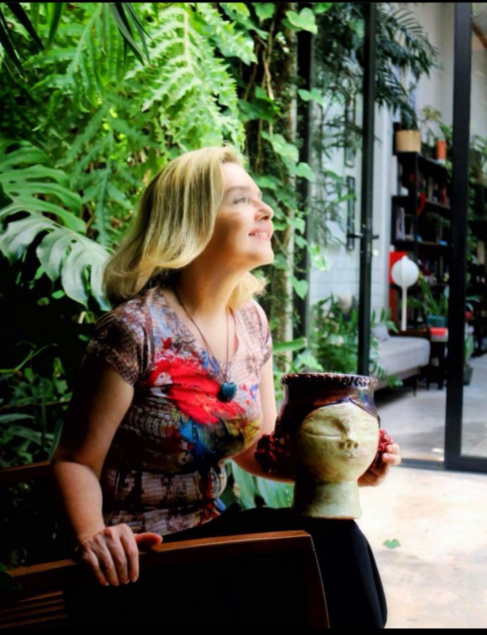 Cláudia Gazzola, 50, adotou como mote: “Reino vegetal, a divina arte que me inspira”. Designer, arquiteta e ceramista, ela conheceu a cerâmica após entrar no chamado “processo de autoconhecimento”, e assim, trocou a rotina agitada de trabalho com grifes de moda cariocas e se mudou para Porto Velho. Veio “em busca de espiritualidade e qualidade de vida”, conforme diz. Do hobby partiu para sua principal atividade econômica. Todas as suas peças foram criadas e inspiradas da natureza. Ela usa folhas e flores de plantas nativas da região, entre elas, cajueiro, ipê e mangueira.