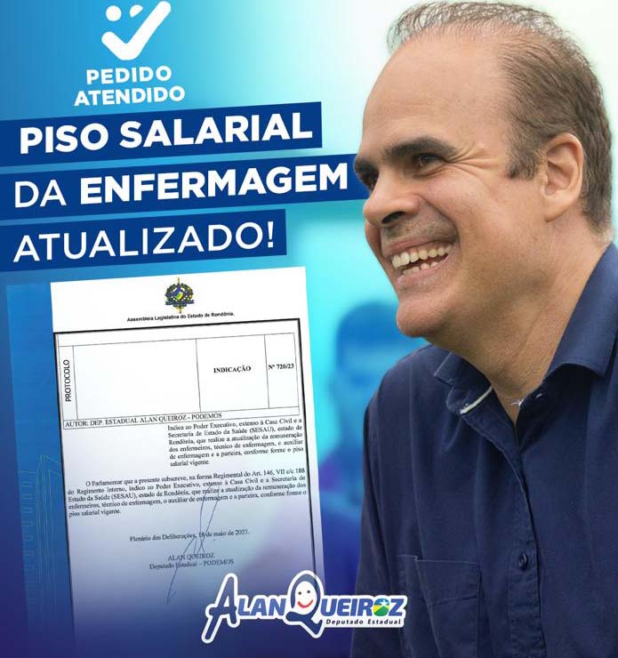 Em maio de 2023, o deputado estadual Alan Queiroz (Podemos) realizou uma indicação ao Governo de Rondônia, por meio da Secretaria de Estado da Saúde (Sesau), com a finalidade de atualizar a remuneração dos enfermeiros, técnicos de enfermagem, auxiliares e a parteira, conforme o piso salarial vigente.