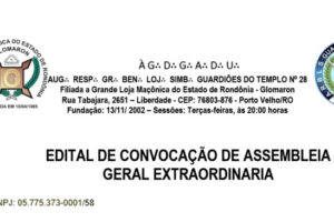 a Augusta e respeitavél Grande Benemérita Loja Simbólica Guardiões do Templo 28, convoca por meio de Edital todos os asscociados para a Assembleia Geral Extra...