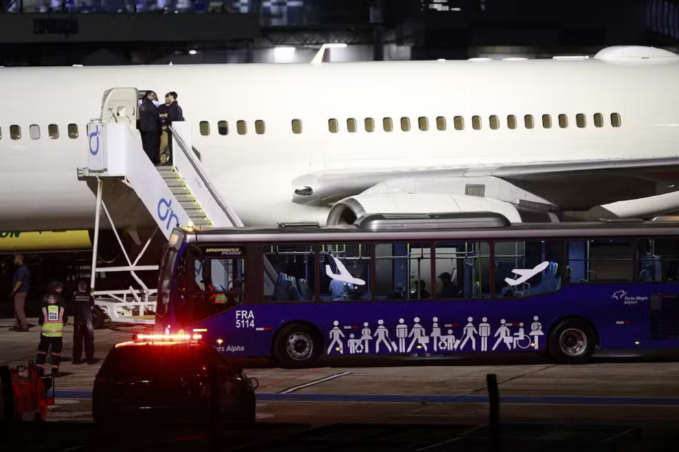 O avião decolou às 19h52 e pousou horas depois no Aeroporto Internacional de Guarulhos, em São Paulo, onde, até a última atualização desta reportagem, permanecia.