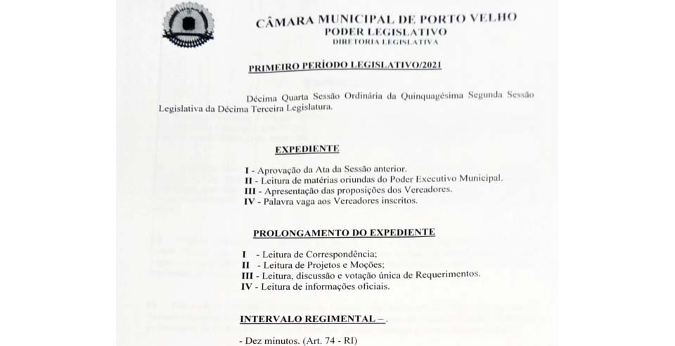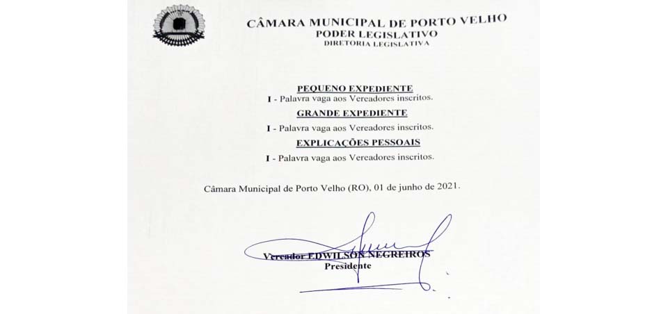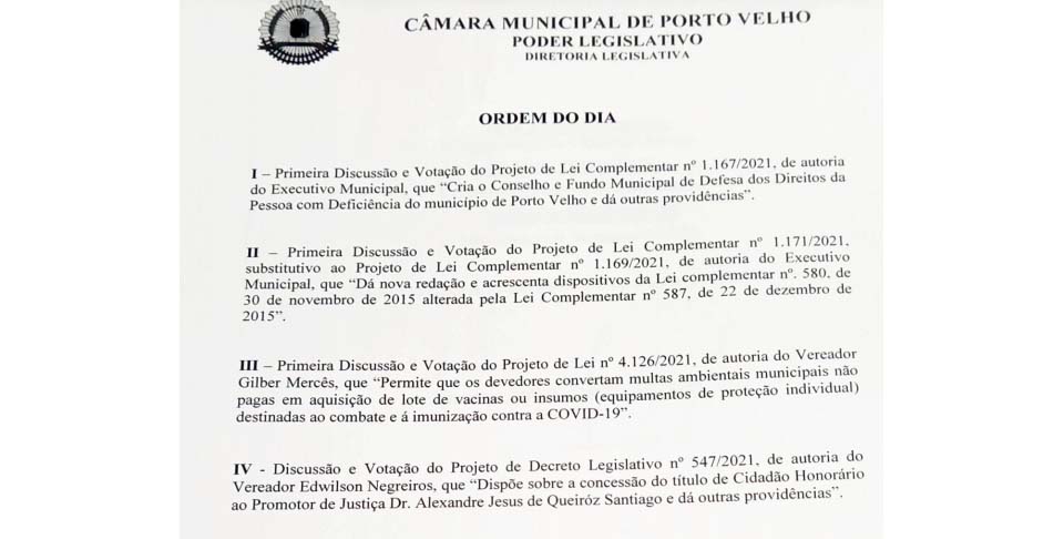 FONTE: Assessoria / Câmara-PVH
