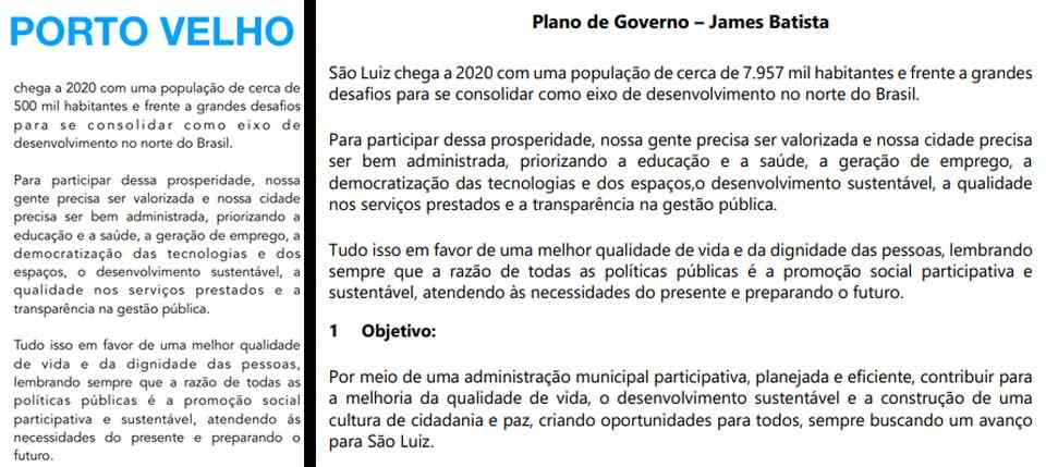 O plágio ficou claro, porque a proposta de Batista foi protocolada no dia 18 de setembro de 2020; Cristiane Lopes, por outro lado, lançou o documento 13 dias depois.