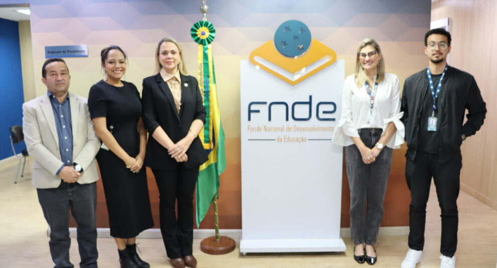 A reunião contou com a presença da assessora da Secretaria de Relações Institucionais da Presidência da República, Jéssica Italoema, do analista técnico do FNDE, Gabriel Aguiar, e da coordenadora-geral de Relações Internacionais do órgão, Adriane Carrara.