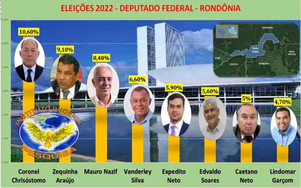 O deputado federal Coronel Chrisóstomo (PSL/RO) é o líder isolado das intenções de voto para os pré-candidatos à Câmara Federal, entre eleitores de Porto Velho, segundo pesquisa divulgada hoje (29.10) pelo Instituto Phoenix.