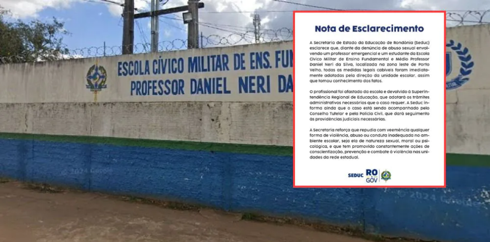 Um professor contratado em caráter emergencial foi afastado das funções após ser denunciado por abuso sexual contra um estudante da Escola Cívico-Militar Professor Daniel Neri da Silva, localizada na zona leste de Porto Velho (RO). O caso está sendo investigado pela Polícia Civil e também está sob acompanhamento do Conselho Tutelar.