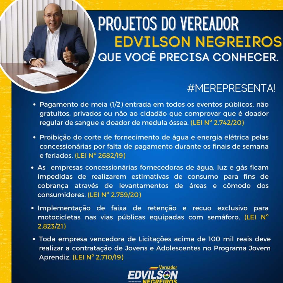 Edwilson Negreiros ainda atuou pelo aumento da verba indenizatória; do auxílio-alimentação; renovou o contrato com a Caixa Econômica Federal proporcionando vantagens aos servidores.