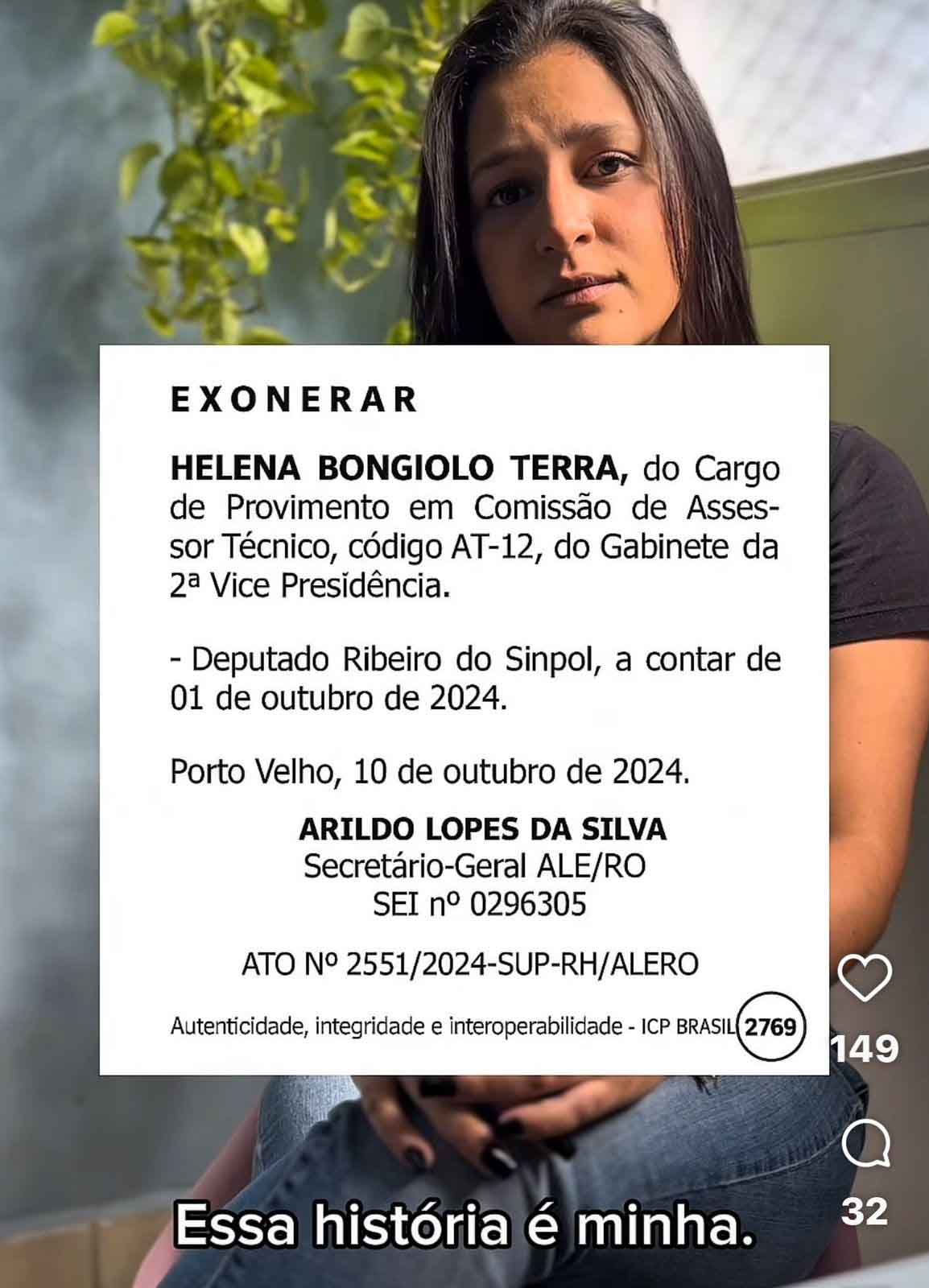 Na gravação, Helena afirma ter enfrentado medo, ansiedade e culpa, relatando que foi ameaçada e permaneceu em silêncio por um longo período. Ao tentar formalizar as denúncias, conforme declara no vídeo, foi desacreditada, exonerada e perdeu o emprego, a estabilidade e a paz, além de continuar sendo perseguida. “Essa história é minha. Infelizmente, não é a única”, diz em trecho da postagem.