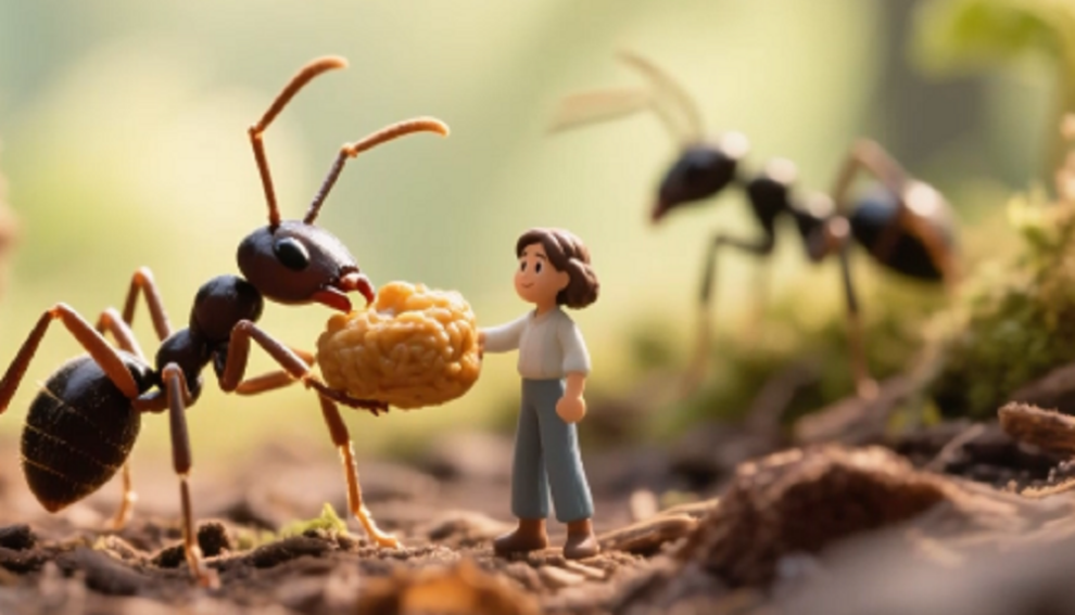 — Pois bem, não me preocupava quando vocês zombavam de mim, mas aprendi com Jesus que amar é melhor do que zombar. O bem que se dá, volta multiplicado. Venham, tem comida para todo o formigueiro