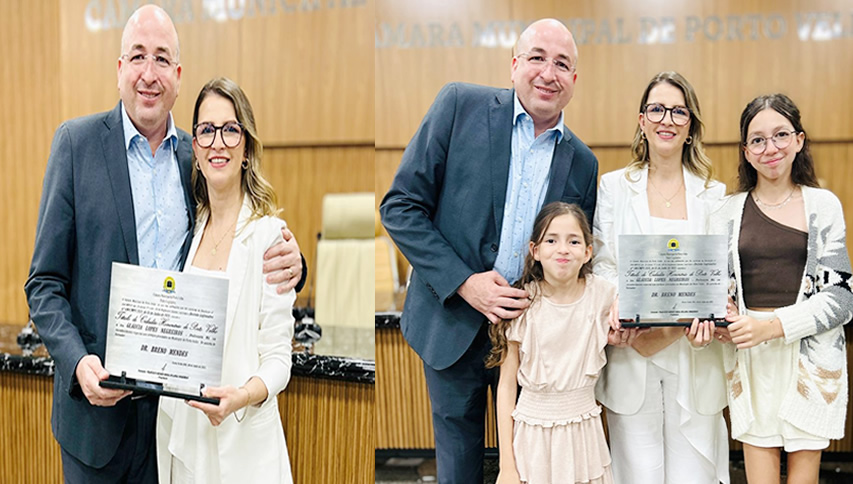 Porto Velho: A Câmara Municipal de Porto Velho realizou, na noite de ontem, uma sessão solene marcada por emoção e reconhecimento. Por iniciativa do vereador Breno Mendes, foi concedido o Título de Cidadã Honorária à professora Gláucia Lopes Negreiros, pelos relevantes serviços prestados à sociedade porto-velhense, especialmente na área da educação.