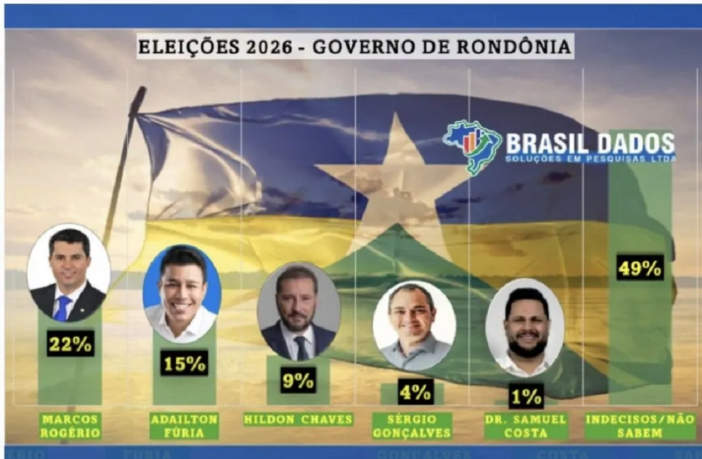 A resposta obtida foi a seguinte: 22% disseram que votariam no Senador Marcos Rogério (PL), 15% escolheriam o prefeito de Cacoal Adailton Fúria (PSD), seguido do ex-prefeito de Porto Velho Hildon Chaves (PSDB), com 9%.