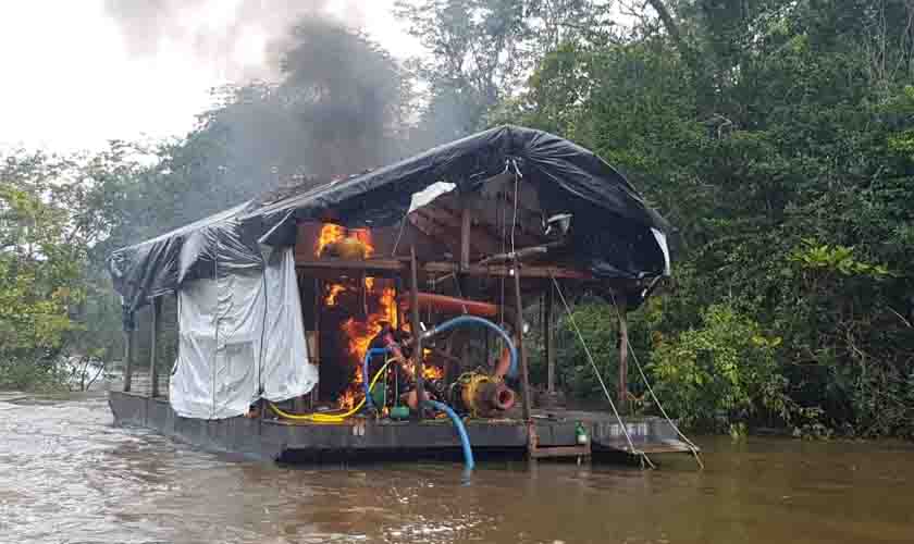 Com apoio do IBAMA e PM/RO, Operação destruiu 12 dragas que estavam em atividade no Rio Roosevelt.