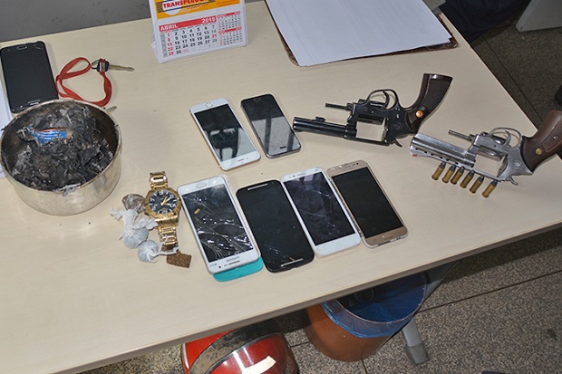 De acordo com a Polícia, a quadrilha realizou um roubo durante a madrugada desta quinta-feira (19), e se esconderam em uma residência no bairro Primavera. De posse de algumas informações, as Guarnições de Rádio Patrulha descobriram o esconderijo e localizaram os suspeitos dormindo. Com eles, os PM’s apreenderam duas motocicletas roubadas, dois revólveres calibre 38, vários aparelhos celulares e uma porção de droga.