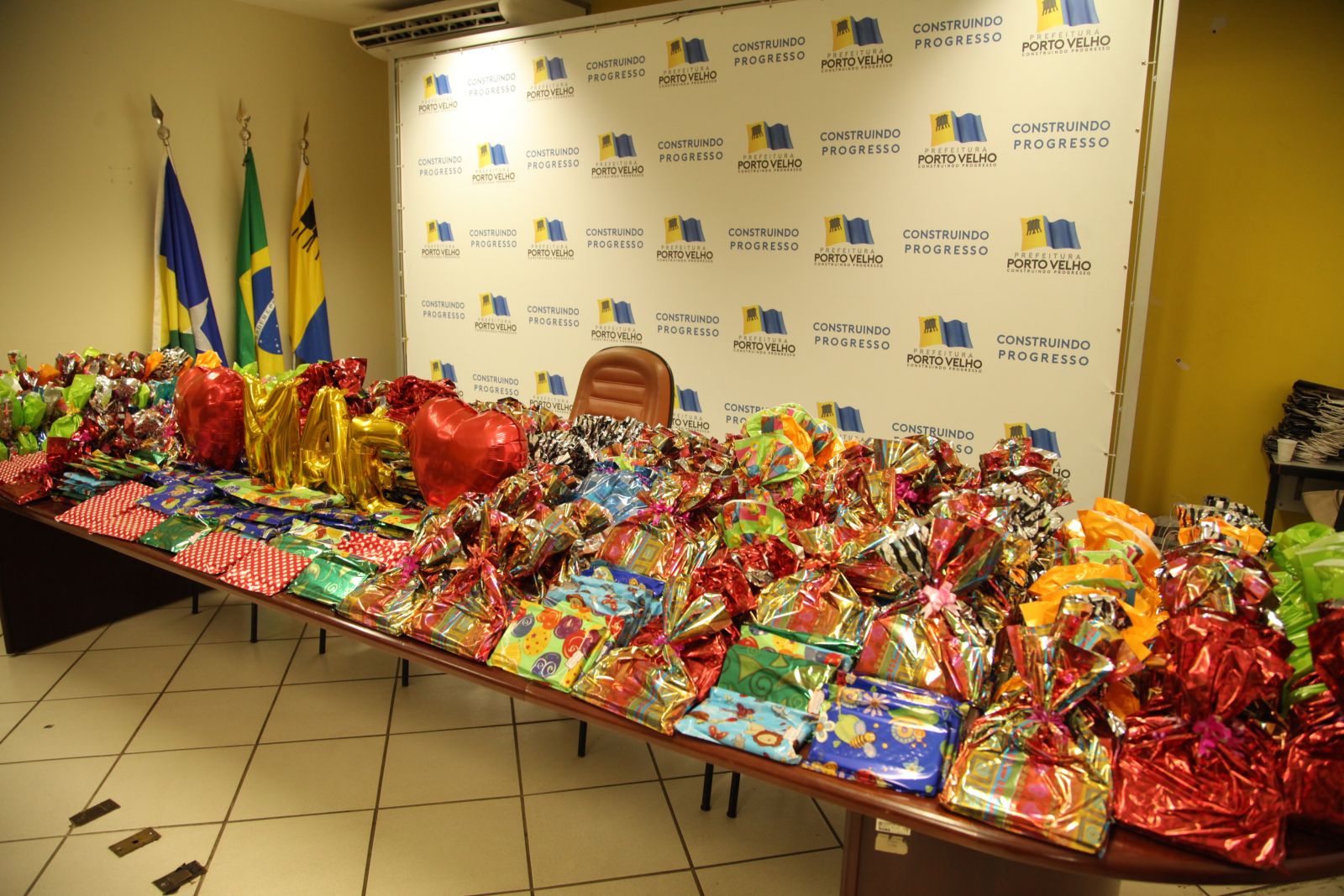 A entrega da maioria dos brindes aconteceu na manhã desta quinta-feira, em uma cerimônia simples realizada na sala de reuniões do gabinete do prefeito Hildon Chaves. À tarde, a primeira-dama fez entrega dos presentes às mães da maternidade municipal.