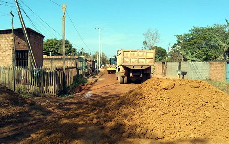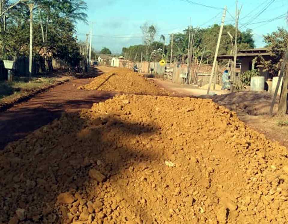 Desta vez, os bairros Porto Cristo e Renascer estão recebendo encascalhamento, nivelamento com patrola e outras máquinas, com escoamento para águas de chuva.