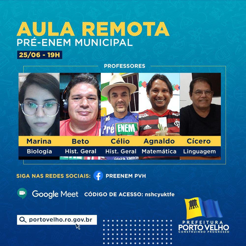 Desde a suspensão das aulas presenciais em função da pandemia do novo Coronavírus (Covid-19), a Prefeitura de Porto Velho vem realizando aulas remotas do projeto Pré-Enem Municipal.