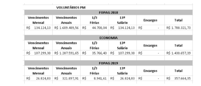 Ressalta, também, e usando comparação demonstrativa, que o uso de militares da denominada Reserva Remunerada (RRs) acarretaria, no mínimo, o dobro do dispêndio gerado com os agentes penitenciários contratados exclusivamente para cumprir encargos voltados a rotinas prisionais.
