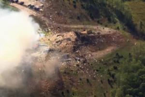 De acordo com o Ministério de Situações de Emergência russo, o helicóptero de resgate não encontrou sobreviventes enquanto sobrevoava a região do acidente Um...
