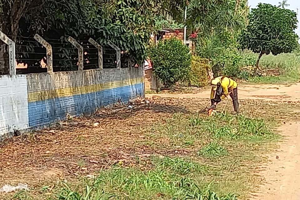 Com isso, a equipe da pasta fora enviada ao Bairro Ronaldo Aragão, situado à zona Leste, a fim de desencadear o mutirão de limpeza do lixo, entulhos e vegetação nos terrenos tanto da Paróquia quanto da Escola Municipal Santa Clara de Assis.