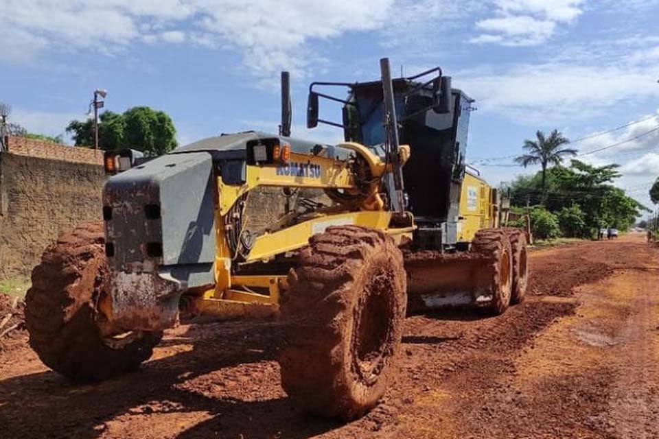 Serviços de patrolamento, encascalhamento, preparação e aplicação de malha asfáltica foram desencadeados nas seguintes ruas: