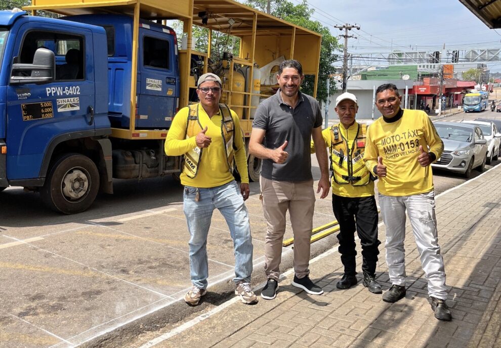 Vereador Márcio Pacele acompanha revitalização das sinalizações de pontos de taxistas e mototaxistas em Porto Velho